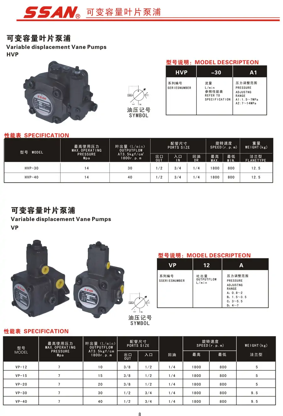SSAN液壓泵 高壓/低壓葉片泵 柱塞泵 導(dǎo)閥電磁溢流閥