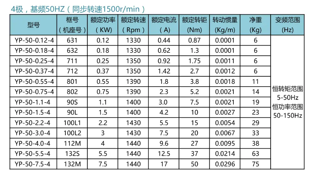 YP-50-1.5-8 YP-50-2.2-8 YP-50-3.0-8 YP-50-5.5-8 YP-50-7.5-8