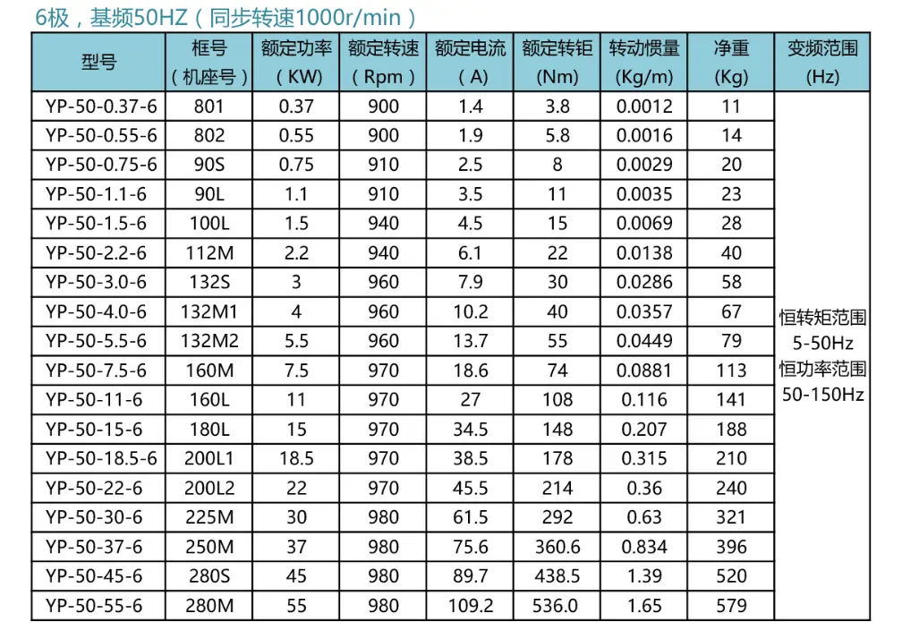 YP-50-90-6 YP-50-110-6 YP-50-132-6 YP-50-160-6 YP-50-200-6 YP-50-250-6