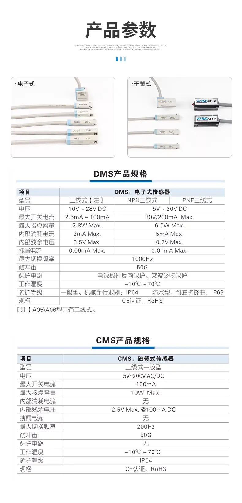 WZSMG電缸專用磁性開關(guān)傳感器 ZMST AG-38DF 三線NPN PNP