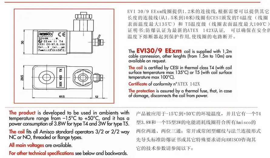 AMISCO電磁閥線圈EVI7/9 AC220V/5VA6VA8.5VA內孔9高29.5