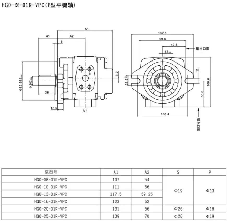 3. 安裝法蘭:SAE J744 標(biāo)準(zhǔn),軸伸 φ16 mm(平鍵)或花鍵可選。