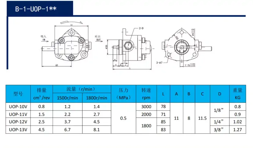 1HP 0.75KW(配HGP-3A 15.875),1HP 0.75KW(配VP30 40),1HP 0.75KW(配RV2R1),