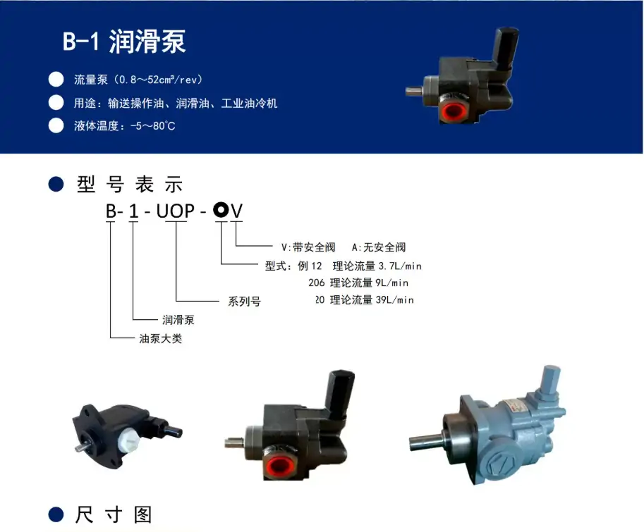 • 進(jìn)出油口:吸口 G1/2"、排口 G3/8"(英制管螺紋)